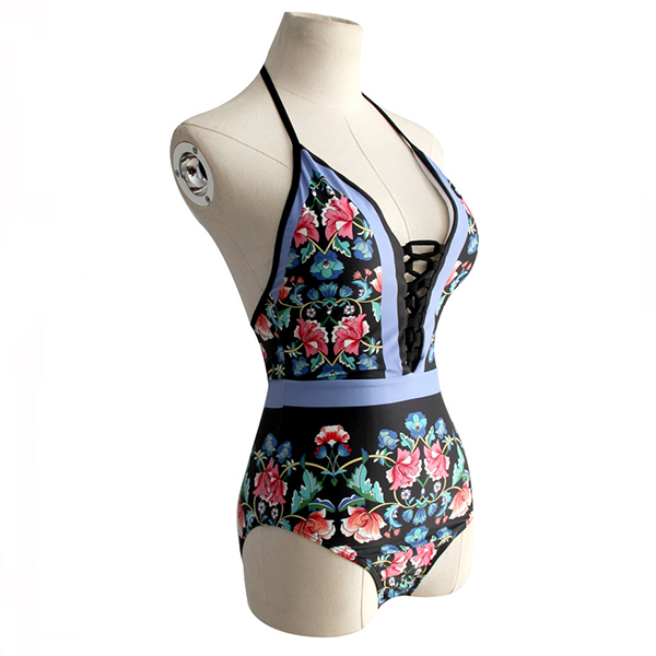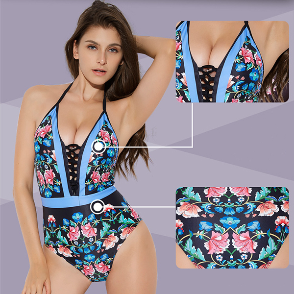 ชุดว่ายน้ำวันพีซ พิมพ์ลายดอกไม้วินเทจสีสวย คอวีแต่งผูกสานไขว้ด้านหน้าเซ็กซี่มากค่ะ มีเสริมฟองน้ำในตัว (เพิ่มฟองน้ำได้ค่ะ)